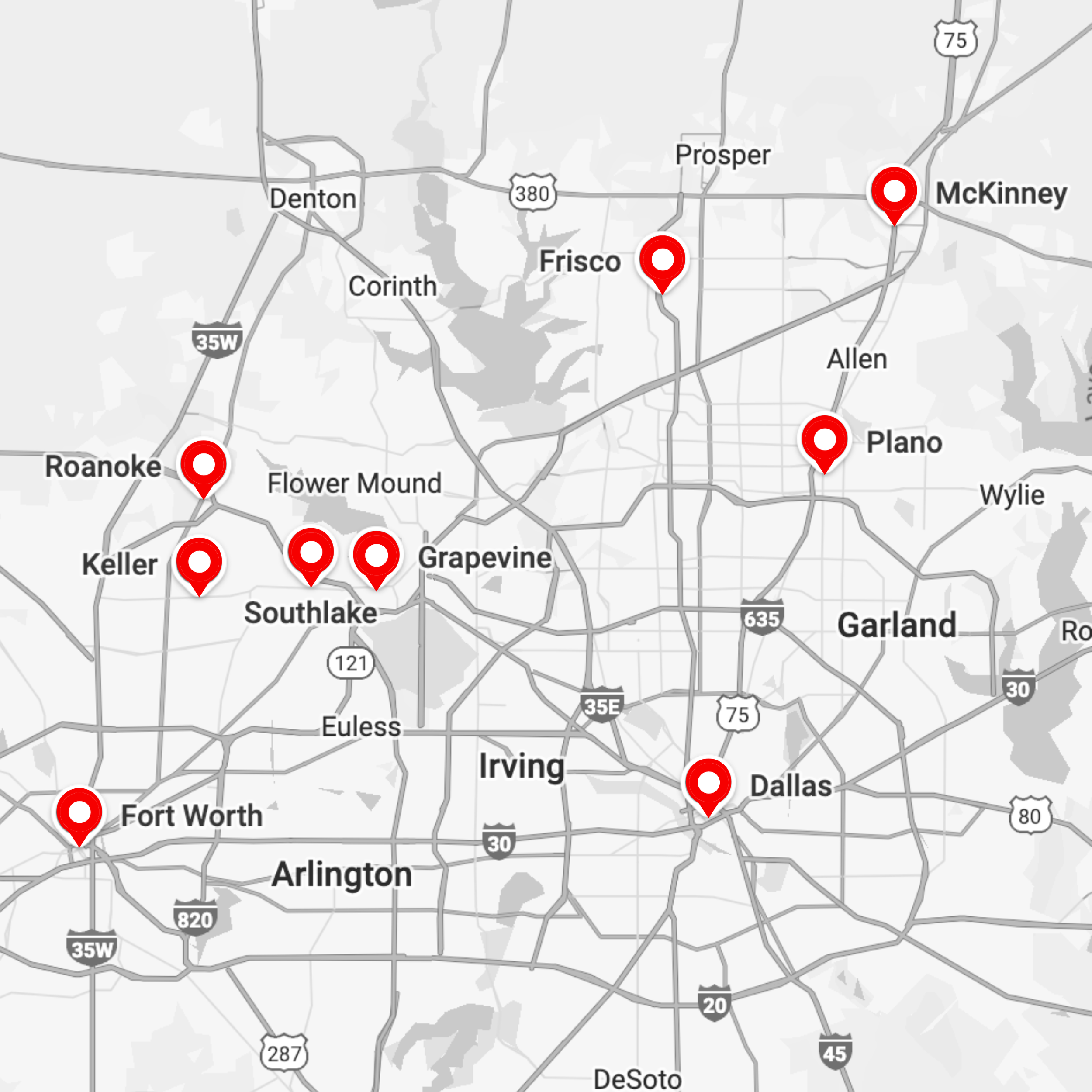We serve residential and commercial customers throughout the DFW area, including Keller, Southlake, Grapevine, Fort Worth, Roanoke, Frisco, McKinney, Plano, and all other suburbs. Our plumbers know the unique plumbing challenges facing homes in North Texas and arrive prepared to solve them efficiently.